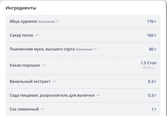 | Какао-порошок | 1.5 Столовая ложка (&quo... |