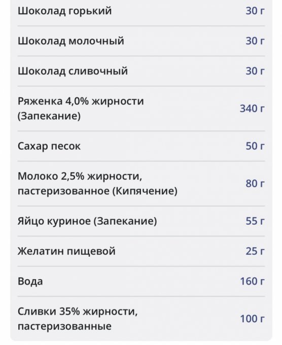 | Шоколад горький |
