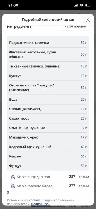 | Кол-во | Калории | Белки | Жиры | Углеводы | |