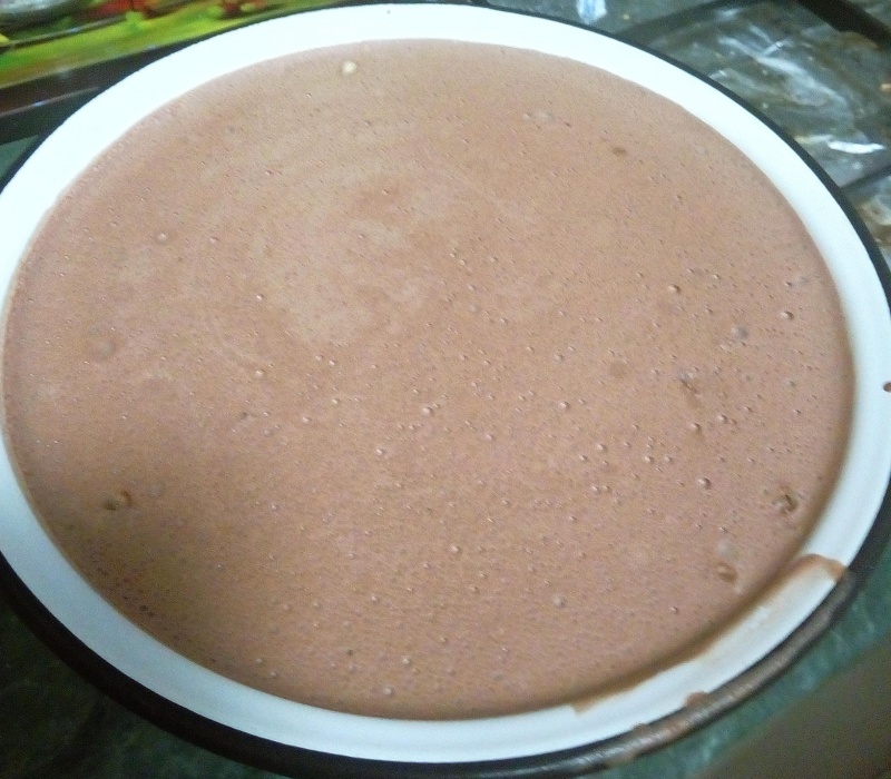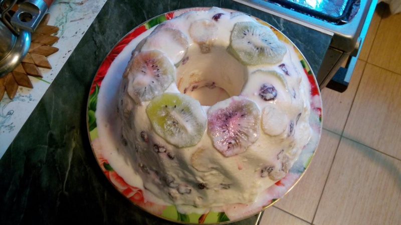 0,5-1,5 минуты опустите емкость с десертом. Достаньте, накройте
