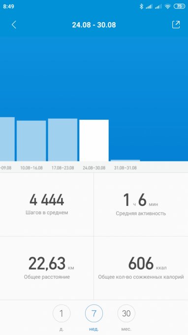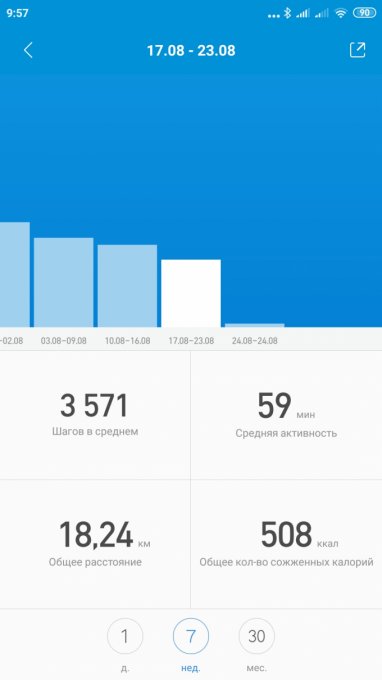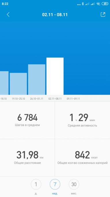 Не перестают удивлять китайцы... Не раз замечала за браслетом, что приложение врёт. Но погрешность в 20 процентов - это уже наглость! Вообще то моё среднее должно быть 8385 шагов, а не 6784 ((