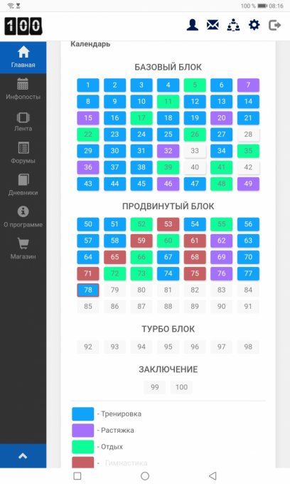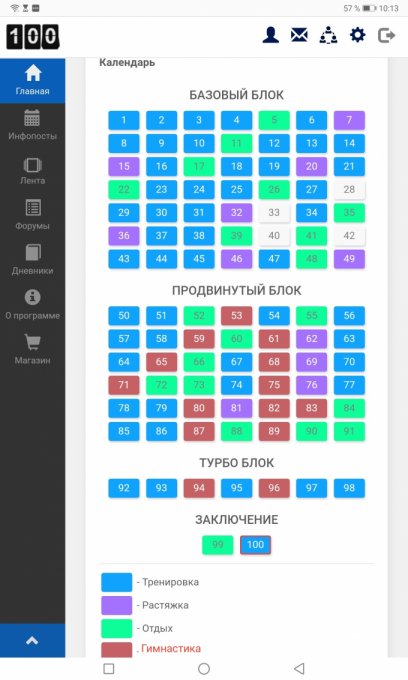 Итак, с перемененным успехом я прошла стодневку https://100.workout.su/