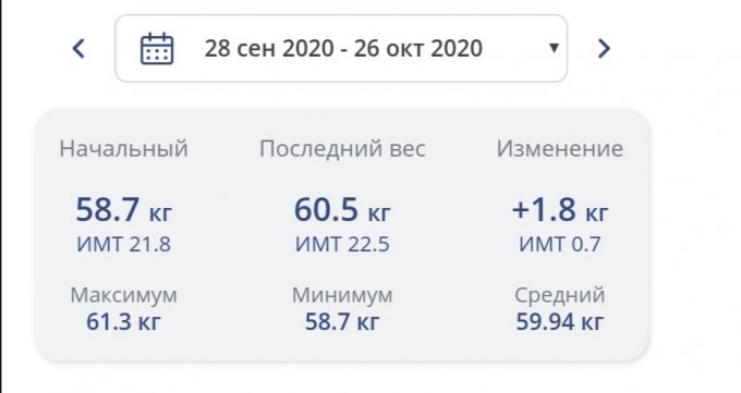 Сейчас вес 60.5 - то есть плюс почти два кг за месяц. Круто да?)))