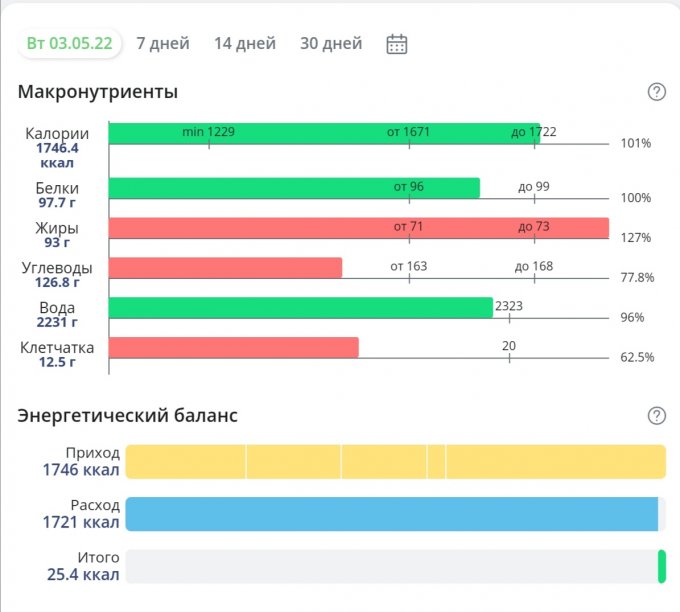 ⛔ Питание (контроль белка, увеличить кол-во овощей)