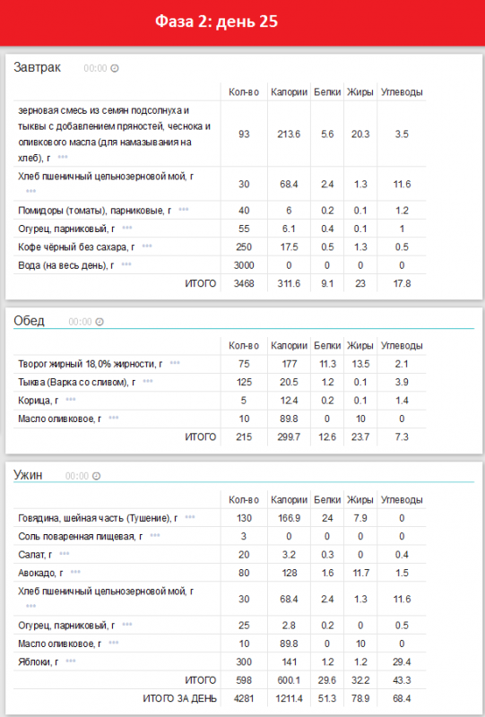 среднесуточная калорийность всю фазу 2 (а это достаточно длительный