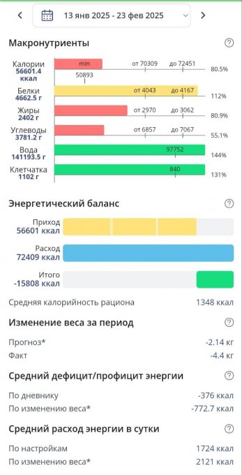 поддержание веса 58 кг, без учёта тренировочной активности.