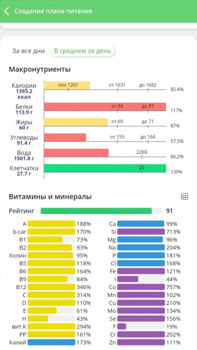 (Нормы старые, на низкоуглеводные их не меняла, ибо не было цели