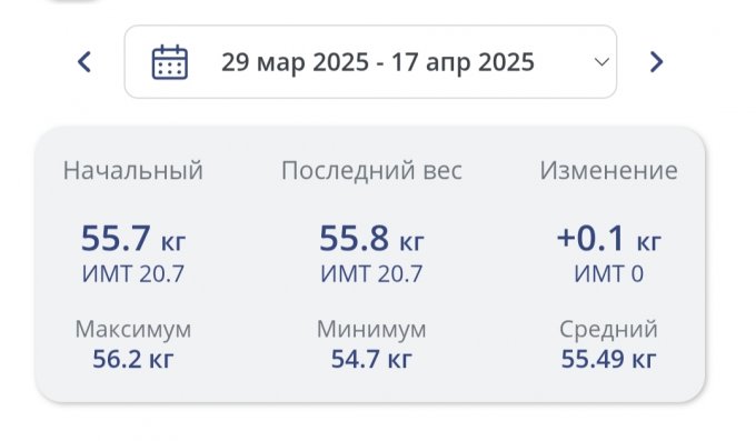 Вес 55,8 (за 20 дней практически без изменений, но падал до