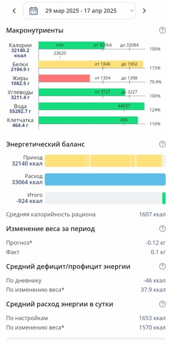 (Нормы старые, на низкоуглеводные их не меняла, ибо не было цели