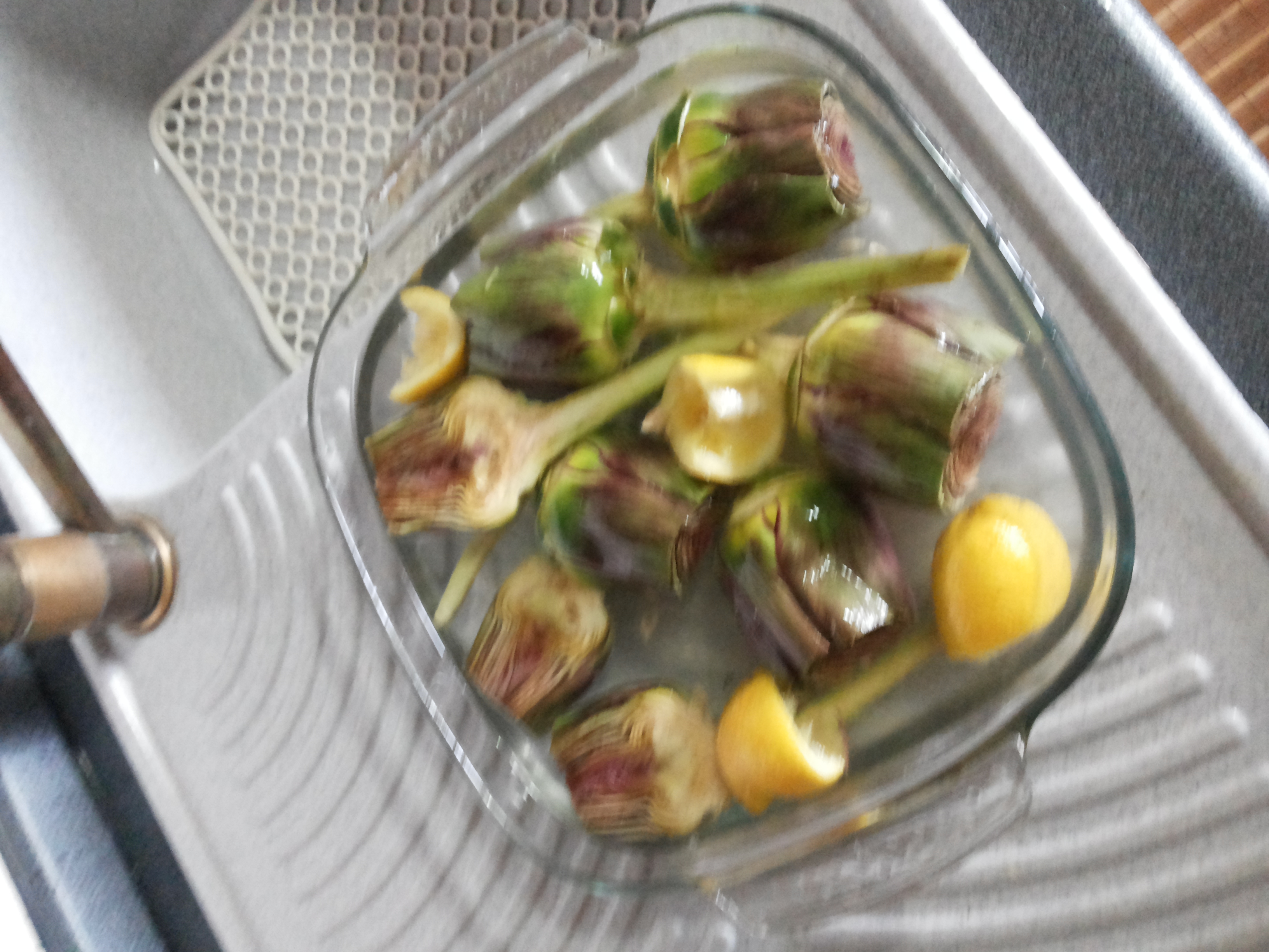 Залить водой,добавить сок одного лимона. Оставить на 2 часа для