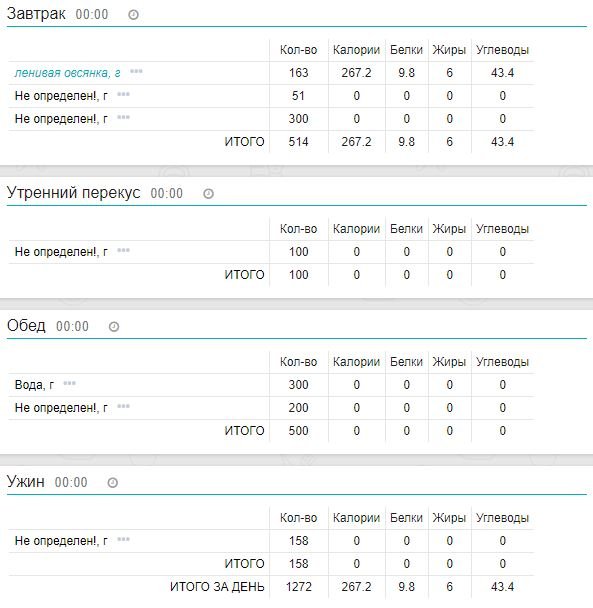 | Итого за день | 1632 | 1329 | 36 | 64 | 150 |