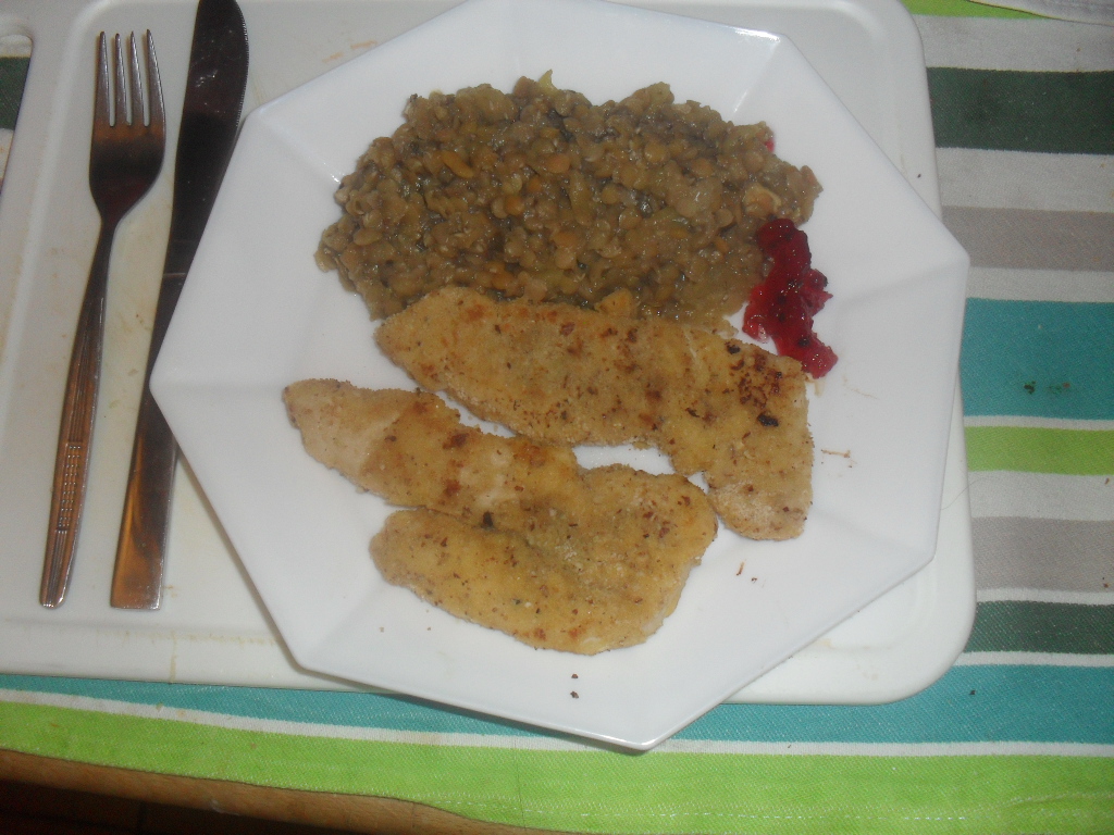 На фото - блюдо из 100 гр. индейки и 160 гр. чечевицы - получилось