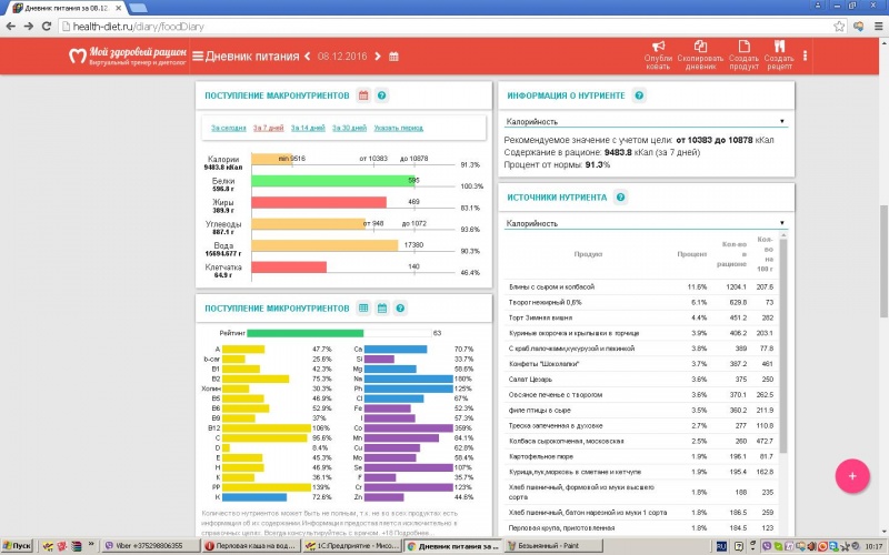 получается расход калорий на 400 в среднем больше прихода, а вес