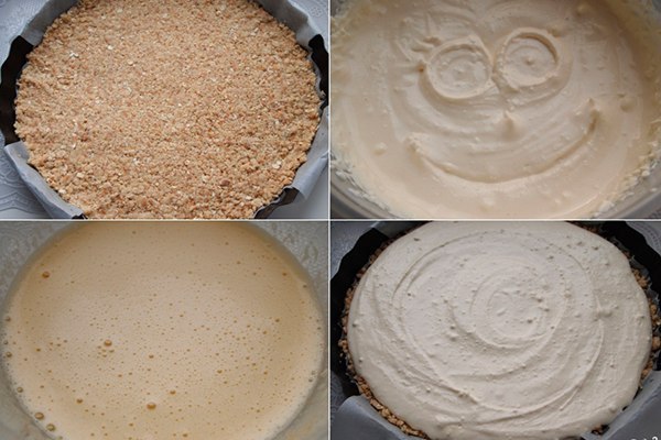 Остальное положите в форму и, разравнивая, хорошо утрамбуйте. Для