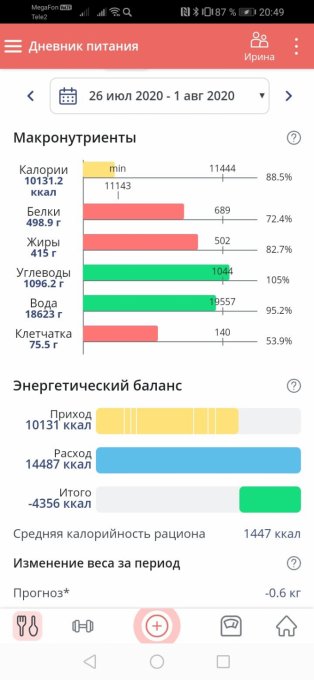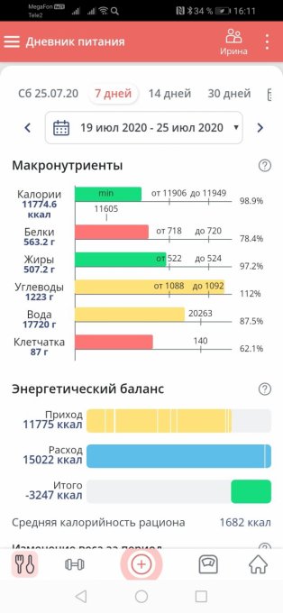 | Итого за день | 3462 | 1276 | 104 | 44 | 107 |