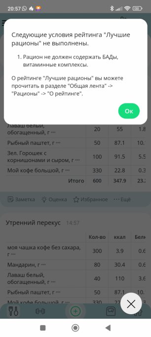 Чтобы увидеть отчеты по питанию и график веса, необходимо войти.