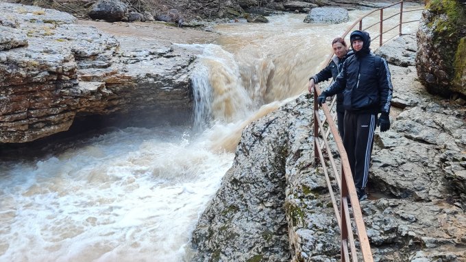 Второй день поездки прошёл ещё более насыщенно. Зимнее Гуамское ущелье с полноводной бурлящей рекой Курджипс никого не оставит равнодушным, адреналина хоть отбавляй. Потом почти пять часов за рулём, приехала домой усталодовольная))