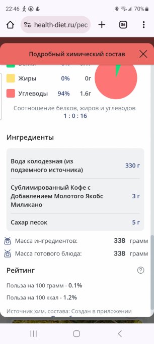 | Кол-во | Калории | Белки | Жиры | Углеводы | |