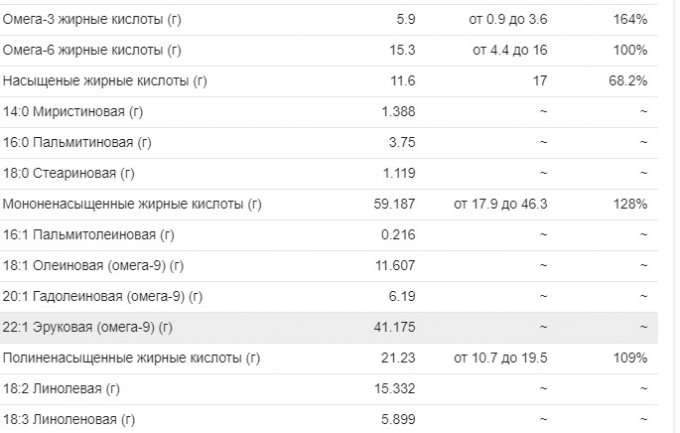 организма. Есть зловредная эруковая кислота (одна из омега-9).