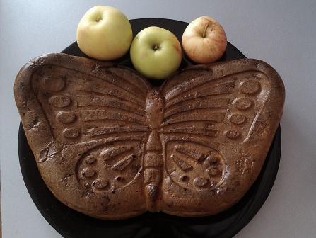форму (у меня шарлотка практически не поднялась, т.к. много яблок,