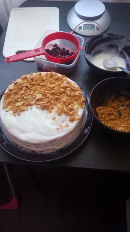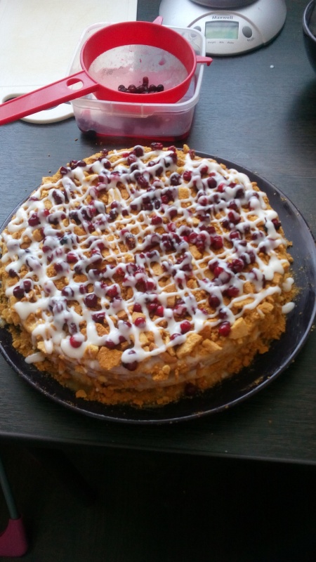 добавила и на 3-ий слой своего торта, 140г клюквы – это тоже