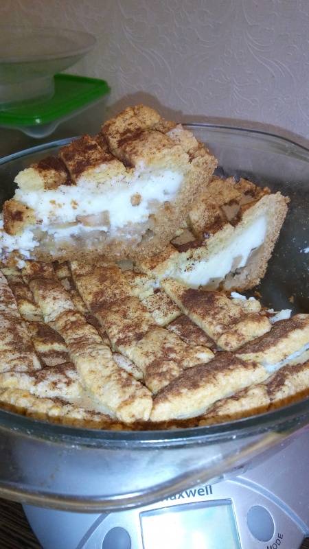 выкладываем яблоки, которые заливаем заварным кремом. Остатками