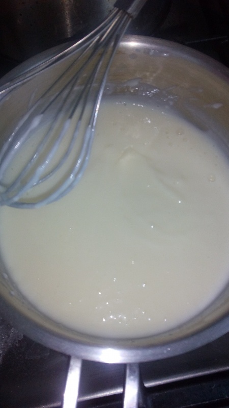 однородности и добавляем к молоку с крахмалом. Ставим на огонь,