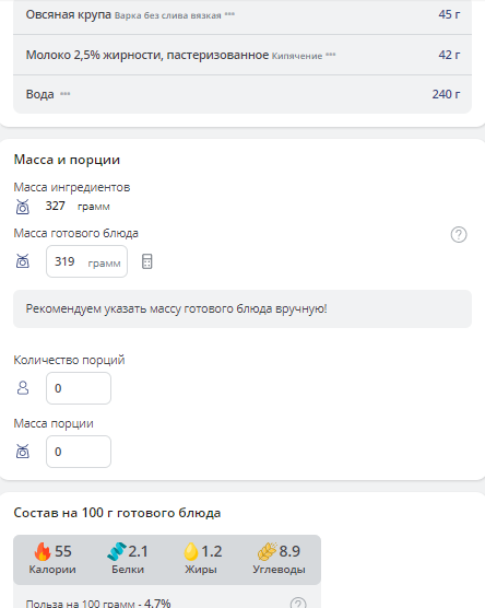 А ,вот,интересно почему при расчете каши ,ингридиенты