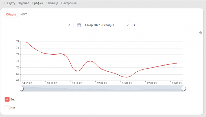 Чтобы увидеть отчеты по питанию и график веса, необходимо войти.