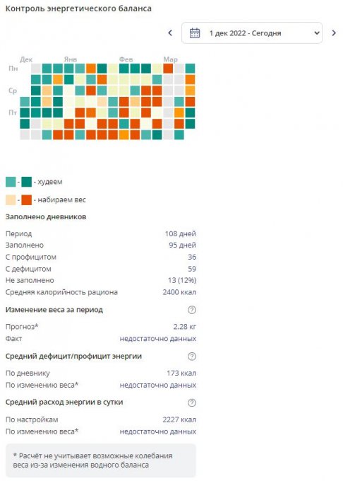 Вес 69.45, удивлен, последнее время часто переедаю( те квадратики, когда не учитывал калории можно считать оранжевыми), но вес даже слегка опустился. Может я наоборот приписываю себе лишние калории, вес продуктов я смотрю по упаковке, на весах не взвешиваю. Недельку-две попробую взвешивать. И да почему-то не получается выйти на стабильный режим питания на 1800-2000 калорий.