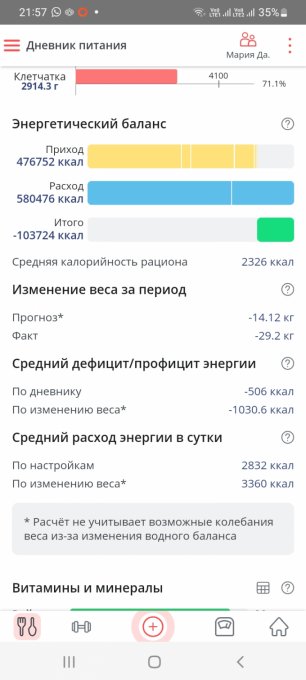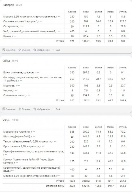 | Итого за день | 720 | 568 | 35 | 44 | 6 |