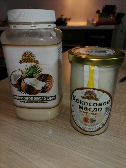 Стоит у меня масло уже давно. Хотя я просто маньяк всего кокосового. Одно рафинировпнное, другое нерафинированное. Начальница расхваливала гречневую кашу с таким маслом. В итоге повелась. Сначала купила рафинированное, а оно не пахнет) В итоге один раз пожарила на нем сырники и отлила, растапливаю на водяной бане и использую для тела, но тоже не прижилось, уж очень липнет потом все. Может зимой будет норм.