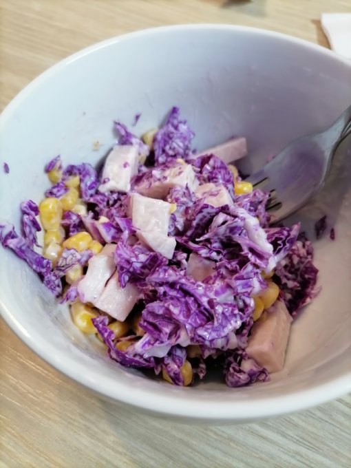 На вечер сделала салат, из фиолетовой пекинки, первый раз такую видела, не знаю хорошо это или плохо, надеюсь не ГМО)))