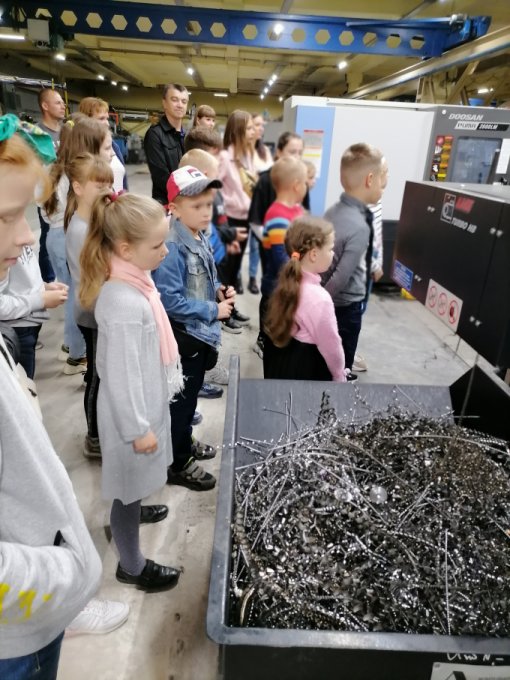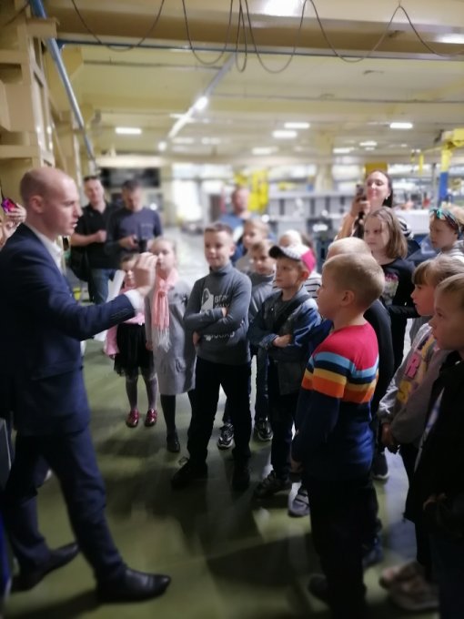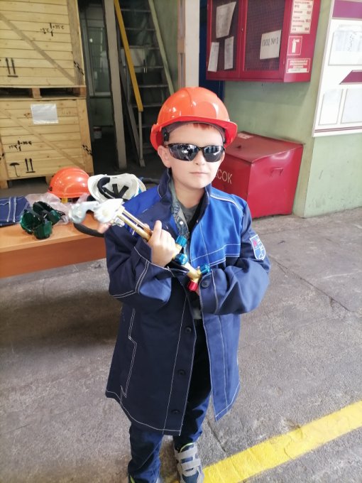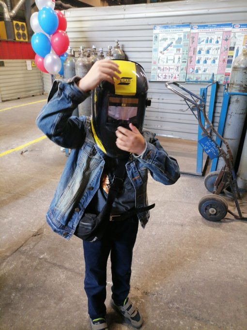 Скоро день машиностроения, наш профессиональный праздник. И руководство организовало экскурсию для детей работников по заводу. Дети были в восторге, особенно мальчики. Все потрогал, на погрузчике посидели, роботами поуправляли, в робу сварщиков переоделись. Даже получили памятные подарочки, рабочие выточили маленькие гантельки для каждого и брелоки с именем, а также по шоколадке.