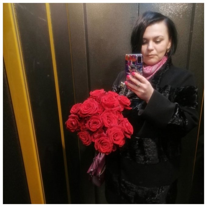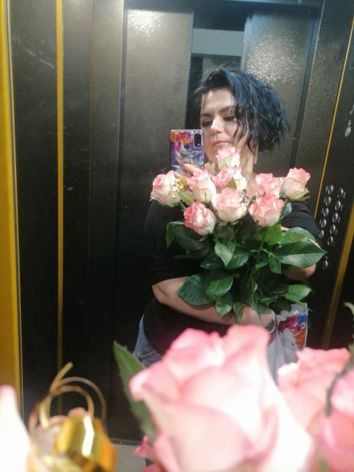 Когда приехали, припарковался передом к площади, сказал, скоро вернётся... Я на своей волне, решила посмотреть свои покупки, померяла перчатки, которые купила на тренировку... Тут резко открывается дверь с моей стороны и протягивается букет... Это было так неожиданно... В первые секунды я вообще не поняла, что это за цветы, кто там стоит, кому они... 😂😂 Так как чепуш в перчатках и принимала🤣🤣