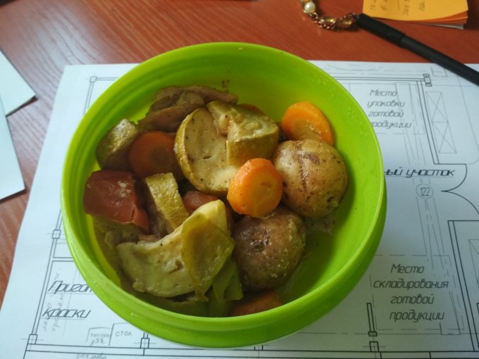 кайфануть)) тушеные овощи и курица. Обед на 350 кал