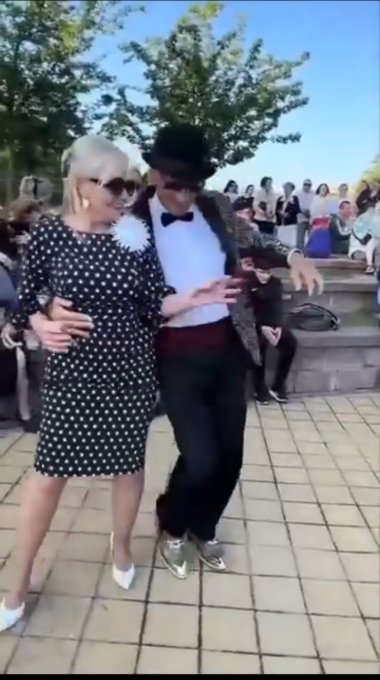другой женщине. Ему 50,ей 61. Тоже все было на танцах, с букетом, с