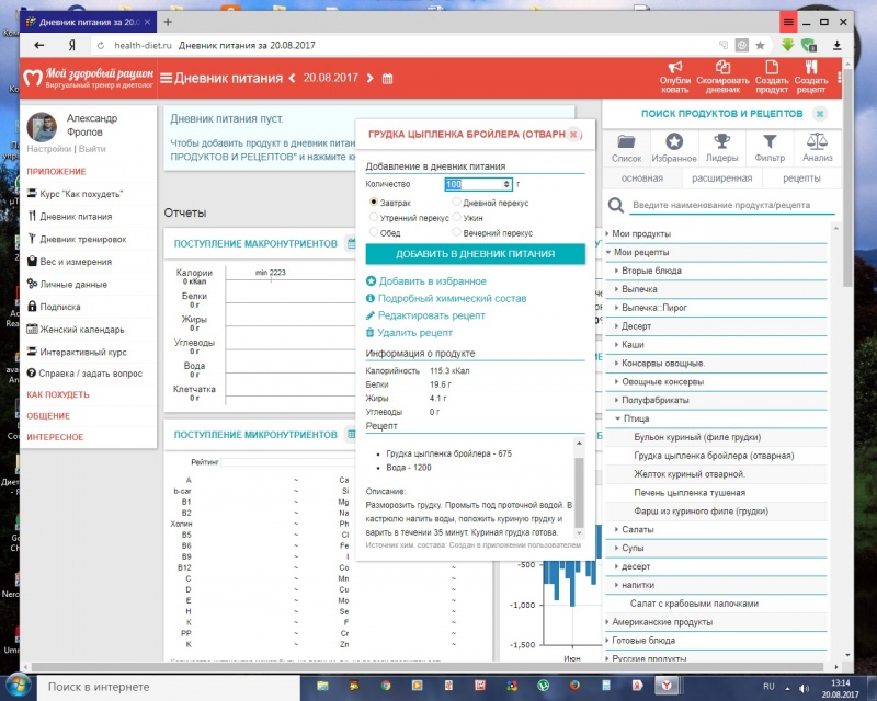 Функция МЗР: Создать рецепт. Пишем в составе - куриная грудка