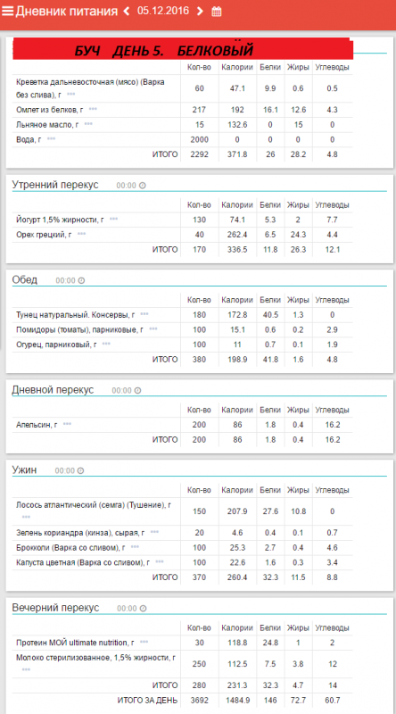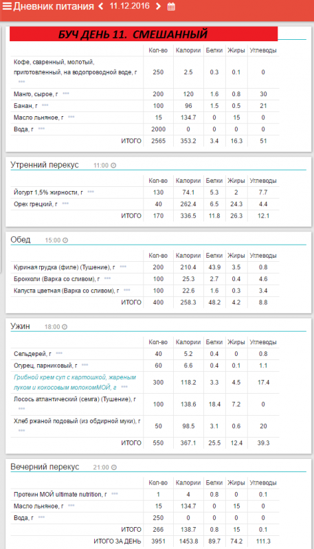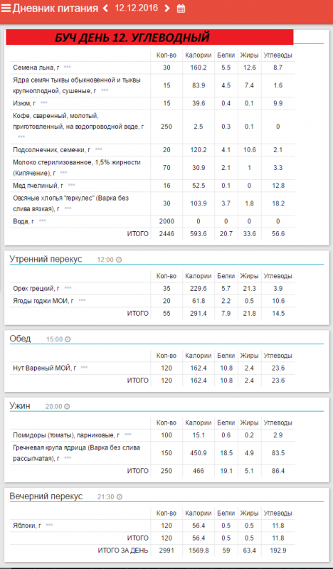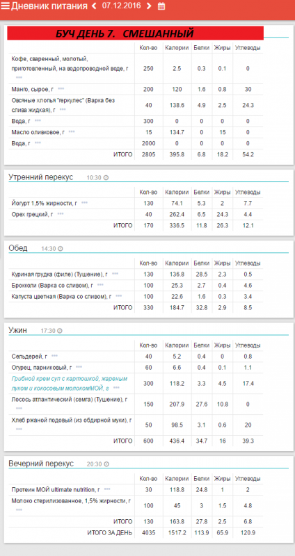 включен высокоуглеводный день, позволяющий восполнить запасы