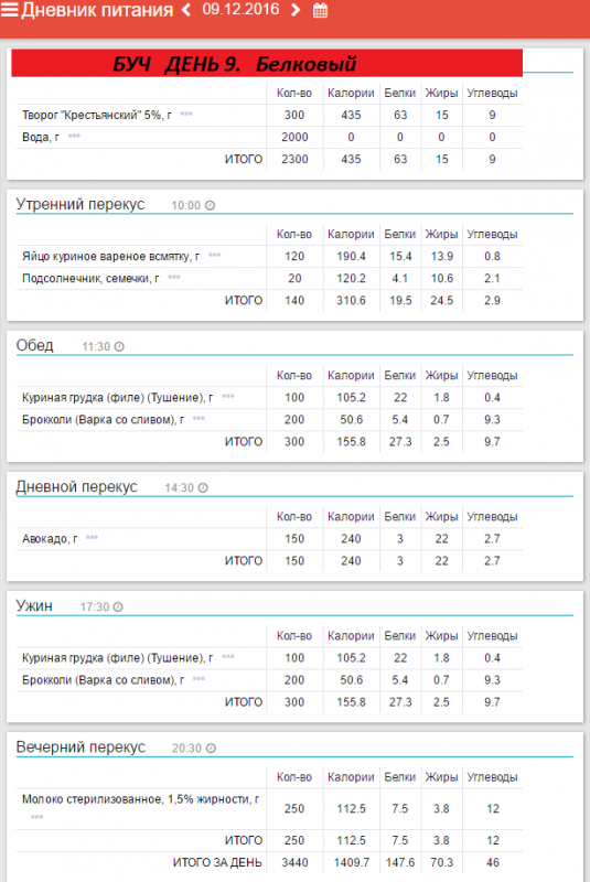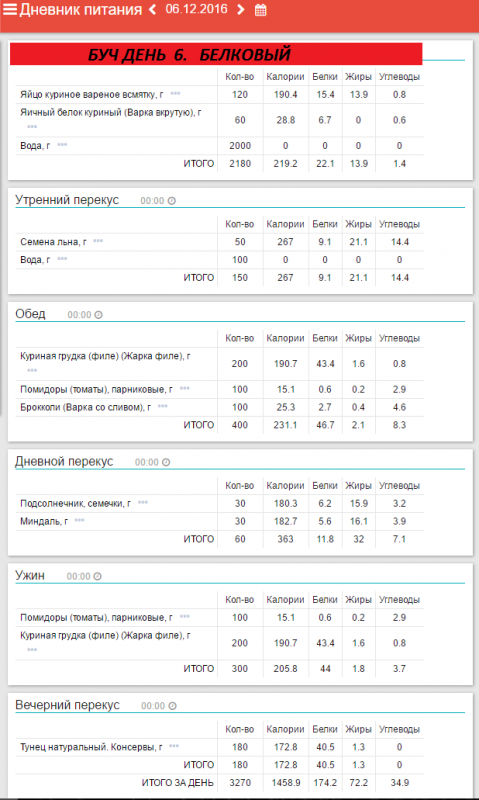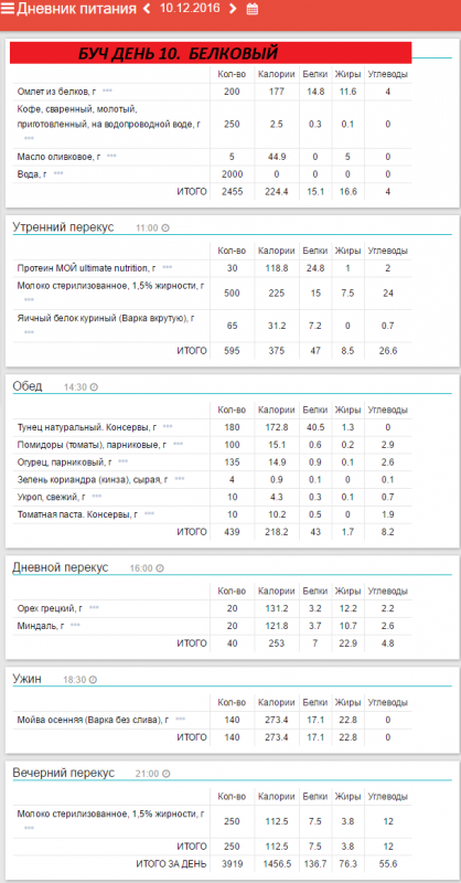 Вывод: за 12 дней диеты по калориям дефицит 6101 калорий.