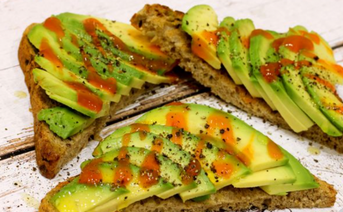 6. Полейте авокадо острым перечным соусом и оливковым маслом.