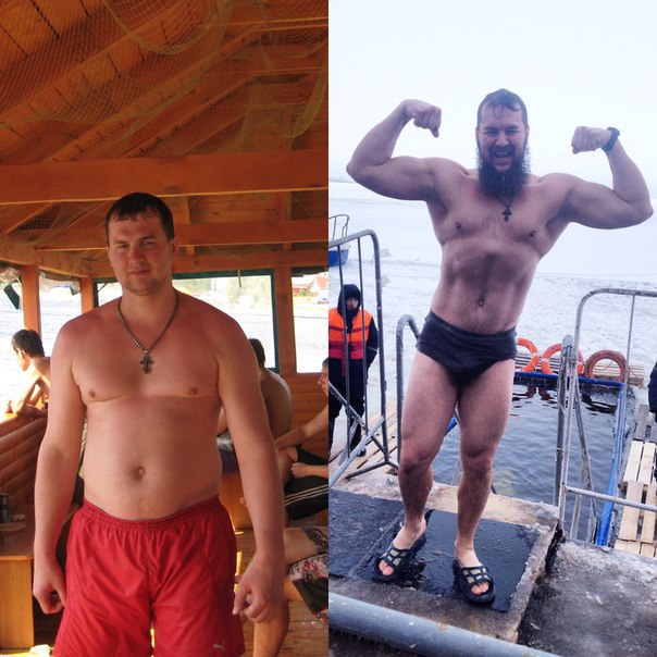 на фото он сам в одном и том же весе (110 кг) с разницей в