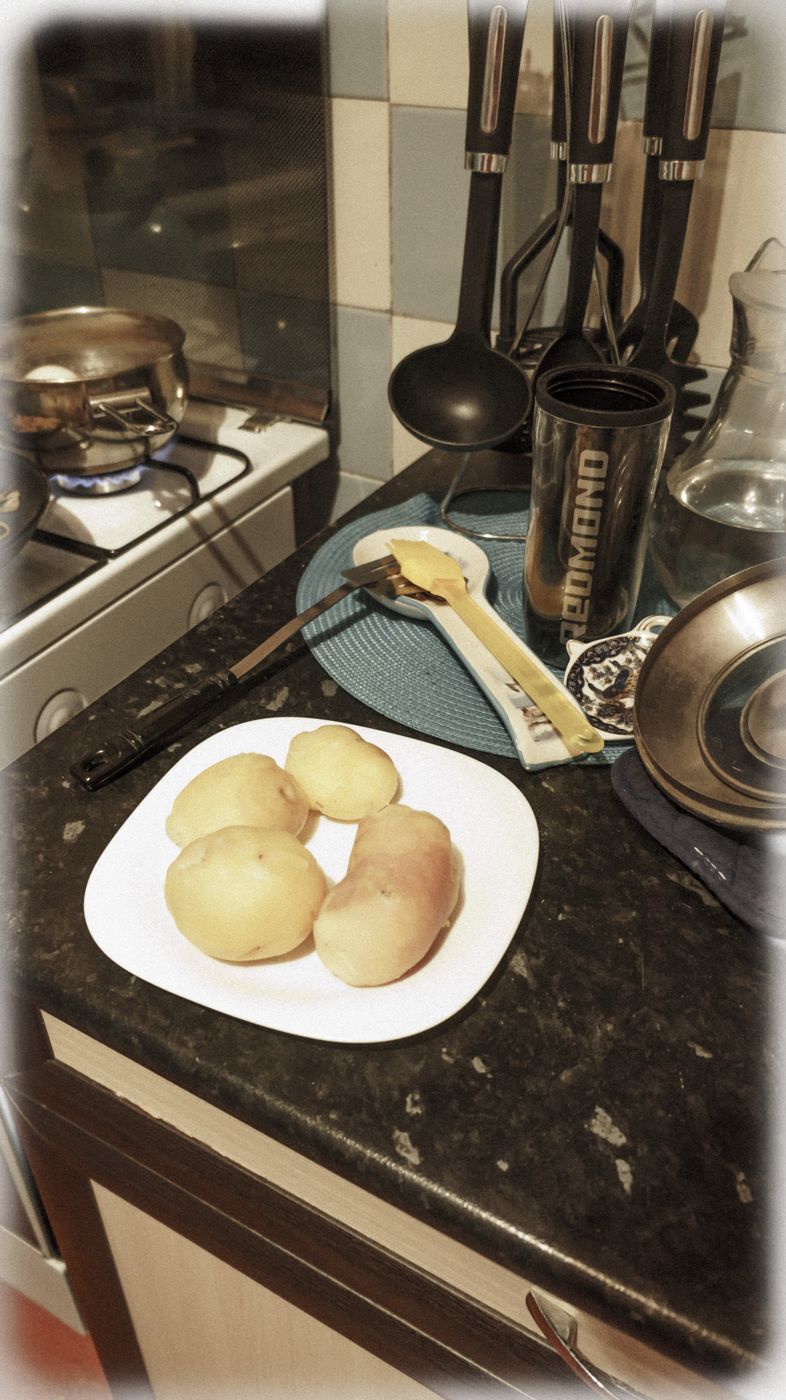 - поверх лука выкладываем тертый вареный картофель(где-то