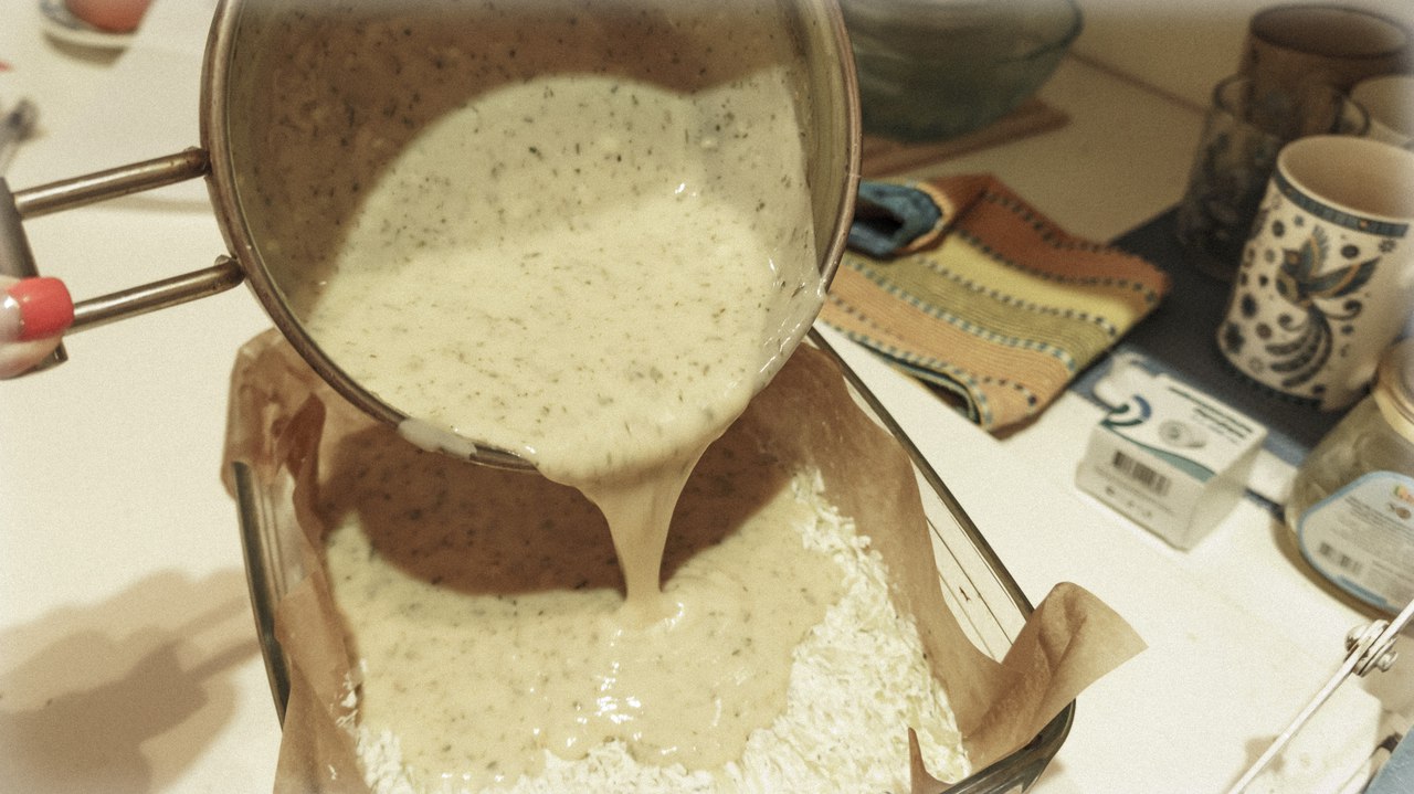 ставим бешамель на окошко,закрыв крышкой(чтобы корочки не