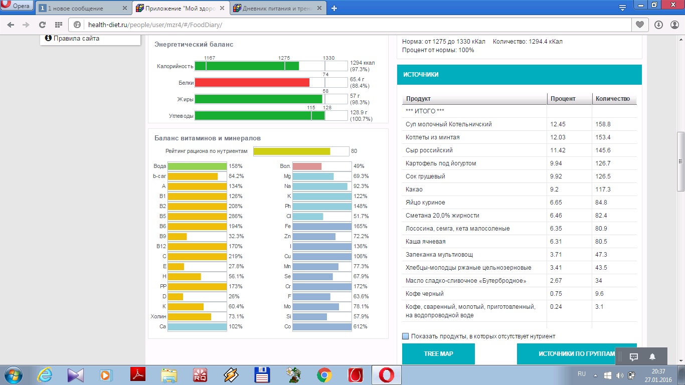 | Итого за день | 4107 | 1347.5 | 69 | 59.7 | 133.1 |