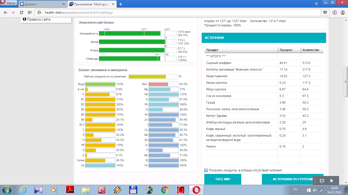 | Итого за день | 2767 | 1314.7 | 73.9 | 57.7 | 119.1 |