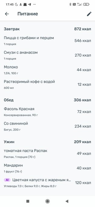| Итого за день | 600 | 64 | 3 | 2 | 6 |