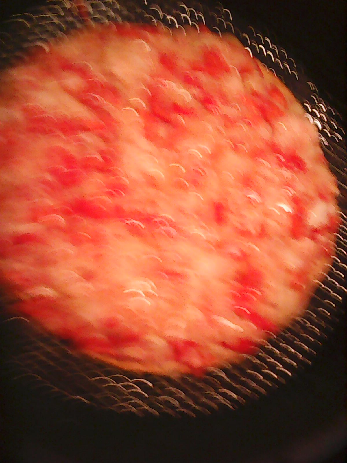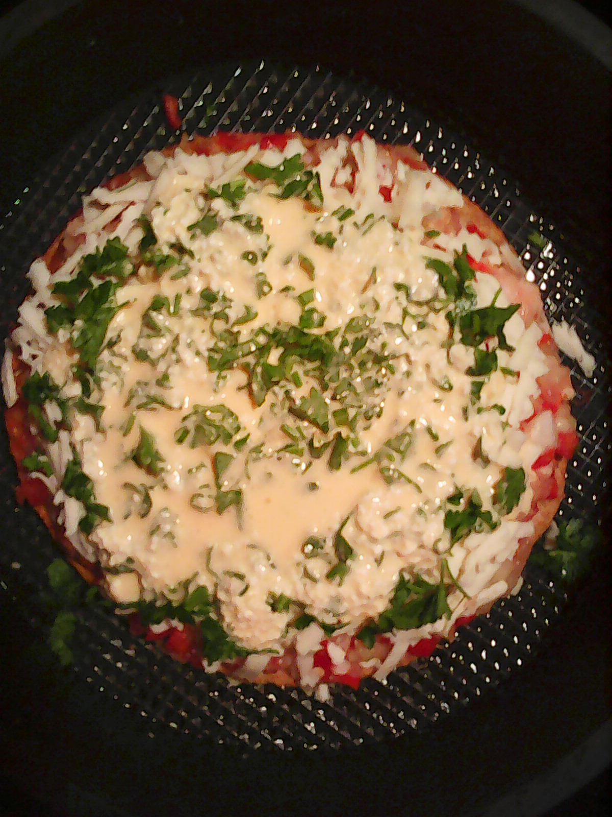 Основу смазать кетчупом. У меня свой, свареный летом.