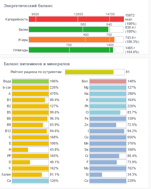 Итак, по МЗР за неделю я в небольшом профиците, масса тела,