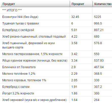 | Итого | 440 | 66.8 | 1.3 | 0.4 | 12.1 |